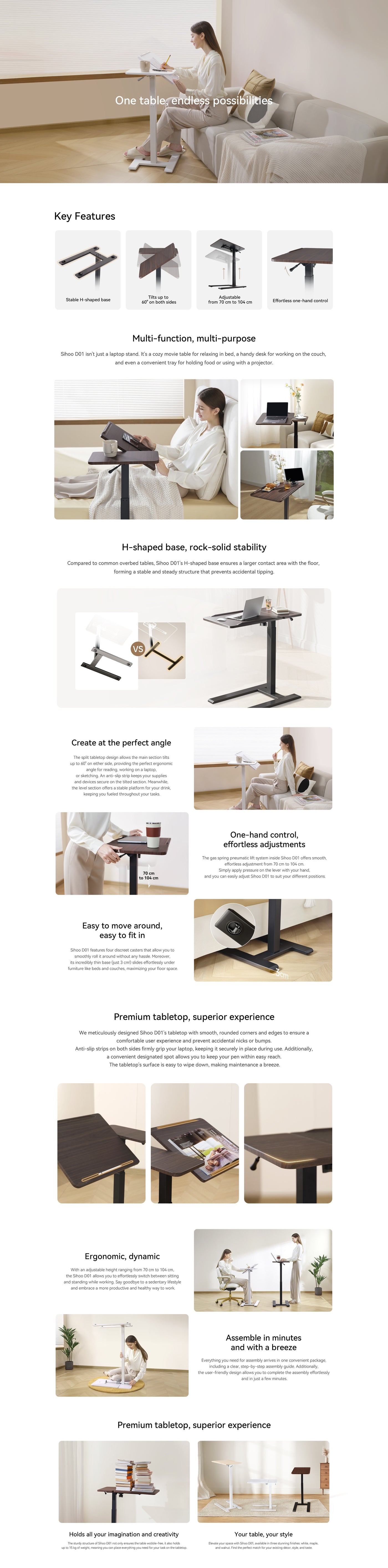 طاولة جانبية قابلة لتعديل الارتفاع من سيهو D01، طاولة سرير