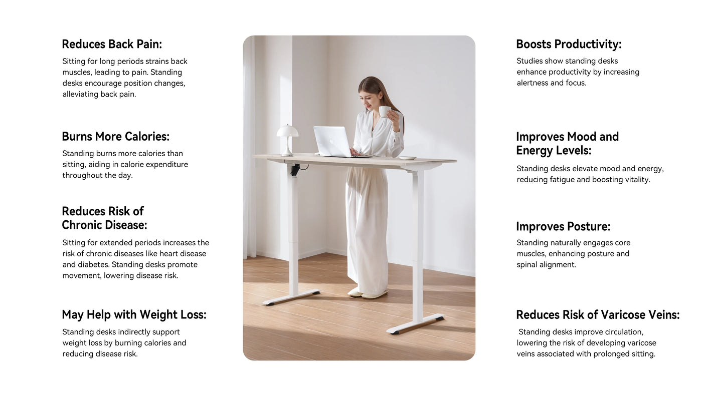 عزز صحتك وإنتاجيتك مع مكتب سيهو D03 القابل لتعديل الارتفاع. يتميز هذا المكتب بإمكانية تعديل ارتفاعه بسلاسة من 71 سم إلى 119 سم بفضل محركه الكهربائي الهادئ، مما يسهل عليك التبديل بين الجلوس والوقوف طوال اليوم. هذا التغيير البسيط كفيل بتحسين صحتك وأدائك في العمل بشكل ملحوظ.